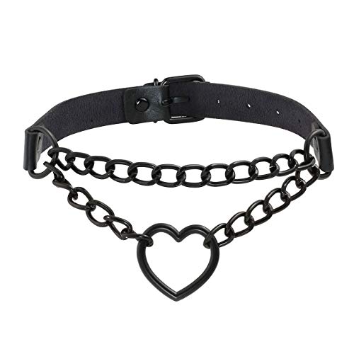 JewelryWe Gothic Choker Halsband - Punk Leder Halskette Verstellbar