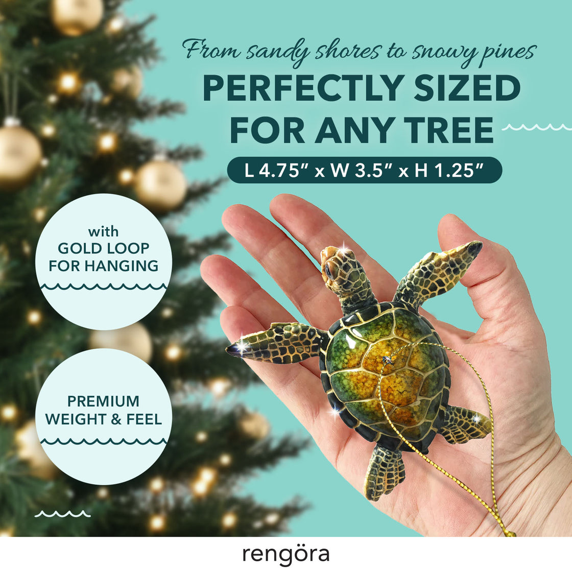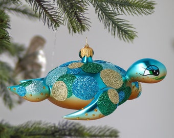 Diese süße Schildkröte bringt Weihnachtsstimmung in deinen Baum! Hergestellt von Old World Christmas - den Profis für mundgeblasene Glasornamente seit 1979. Jede Schildkröte wird einzeln von Hand geblasen, bemalt und mit Glitzer verziert - ein richtiges Unikat also! Maße: 2 x 3 x 1,75 Zoll - nicht zu groß, nicht zu klein, einfach perfekt für deinen Weihnachtsbaum. Ob als Geschenk für Weihnachtsfans, als Ergänzung zu deiner eigenen Sammlung oder als besonderes Andenken - diese Schildkröte wird dich jedes Jahr aufs Neue begeistern. Traditionelles Handwerk meets modernes Design - so macht Weihnachtsdeko richtig Spaß! Und das Beste: Sie sieht nicht nur am Baum toll aus, sondern auch als Deko für Geschenke oder den Adventskranz.