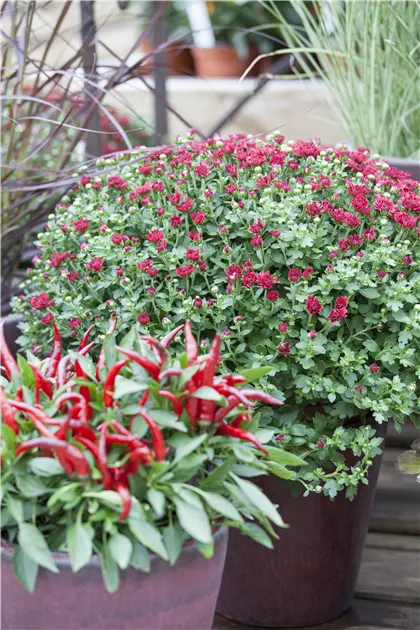 Bring Farbe in deinen Herbstgarten! Dieses 3er Set mit Garten-Chrysanthemen (Chrysanthemum indicum) sorgt für eine üppige Blütenpracht, wenn andere Pflanzen schon verblüht sind. Du bekommst drei kräftige Pflanzen in harmonisch abgestimmten Farben - je nach Verfügbarkeit in Weiß, Gelb oder Rosa. Die Pflanzen kommen im 10-11 cm Topf und werden etwa 25-40 cm hoch. Von August bis Oktober/November verwandeln sie deinen Garten, Balkon oder Terrasse in ein Blütenmeer! Sie lieben sonnige bis halbschattige Standorte und brauchen nur mittelmäßig Wasser - Staunässe bitte vermeiden. Viele Sorten sind bedingt winterhart, bei Auspflanzung empfehlen wir aber einen leichten Winterschutz. Perfekt für Beet, Kübel oder Balkonkästen! Auch als herbstliches Geschenk eine absolute Augenweide. Hol dir jetzt diese robusten Dauerblüher und genieße den Herbst in voller Pracht - deine Nachbarn werden neidisch sein!