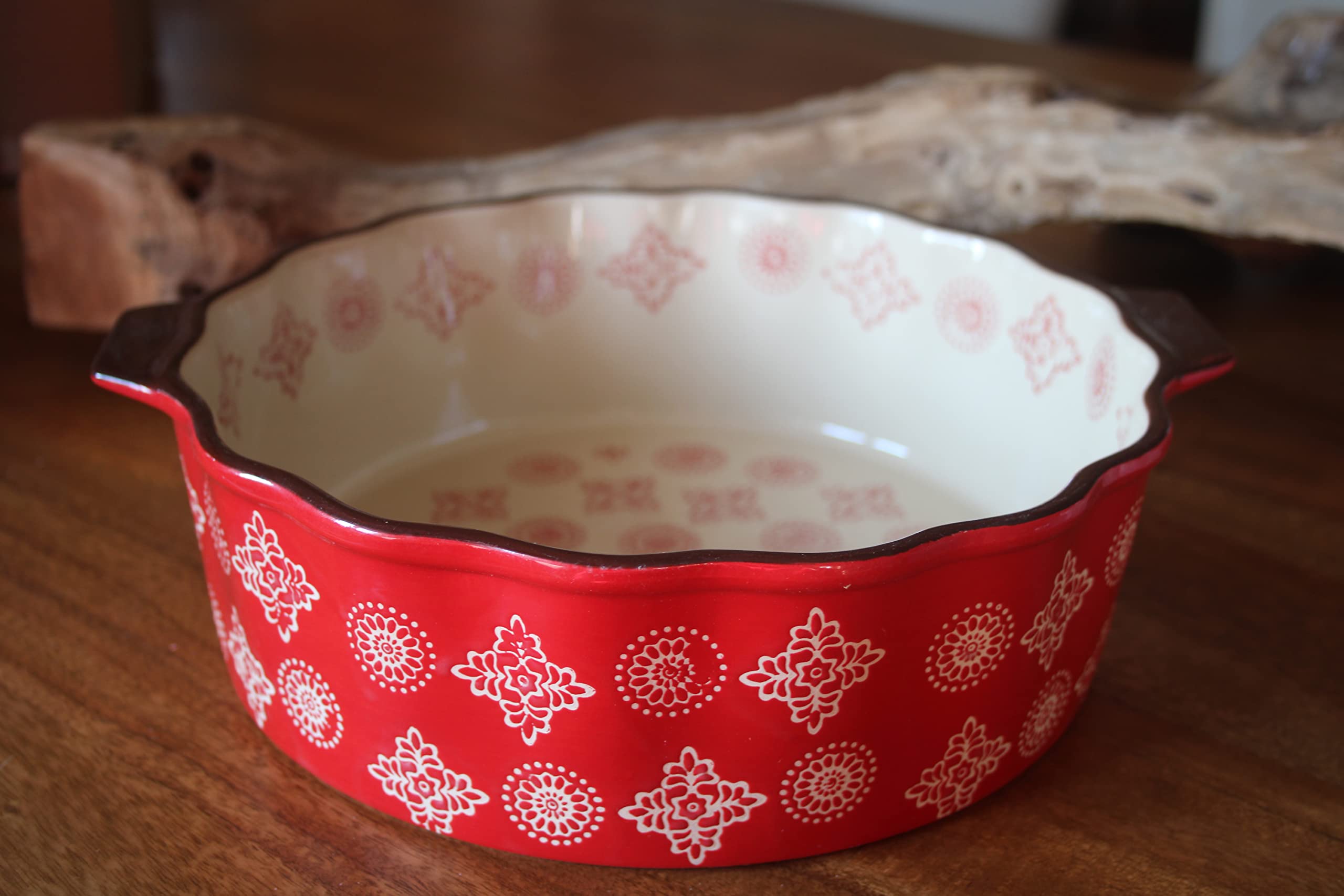 ONEMORE Keramik Auflaufform - 25cm Clafoutis & Kuchenform 1180ml Rot