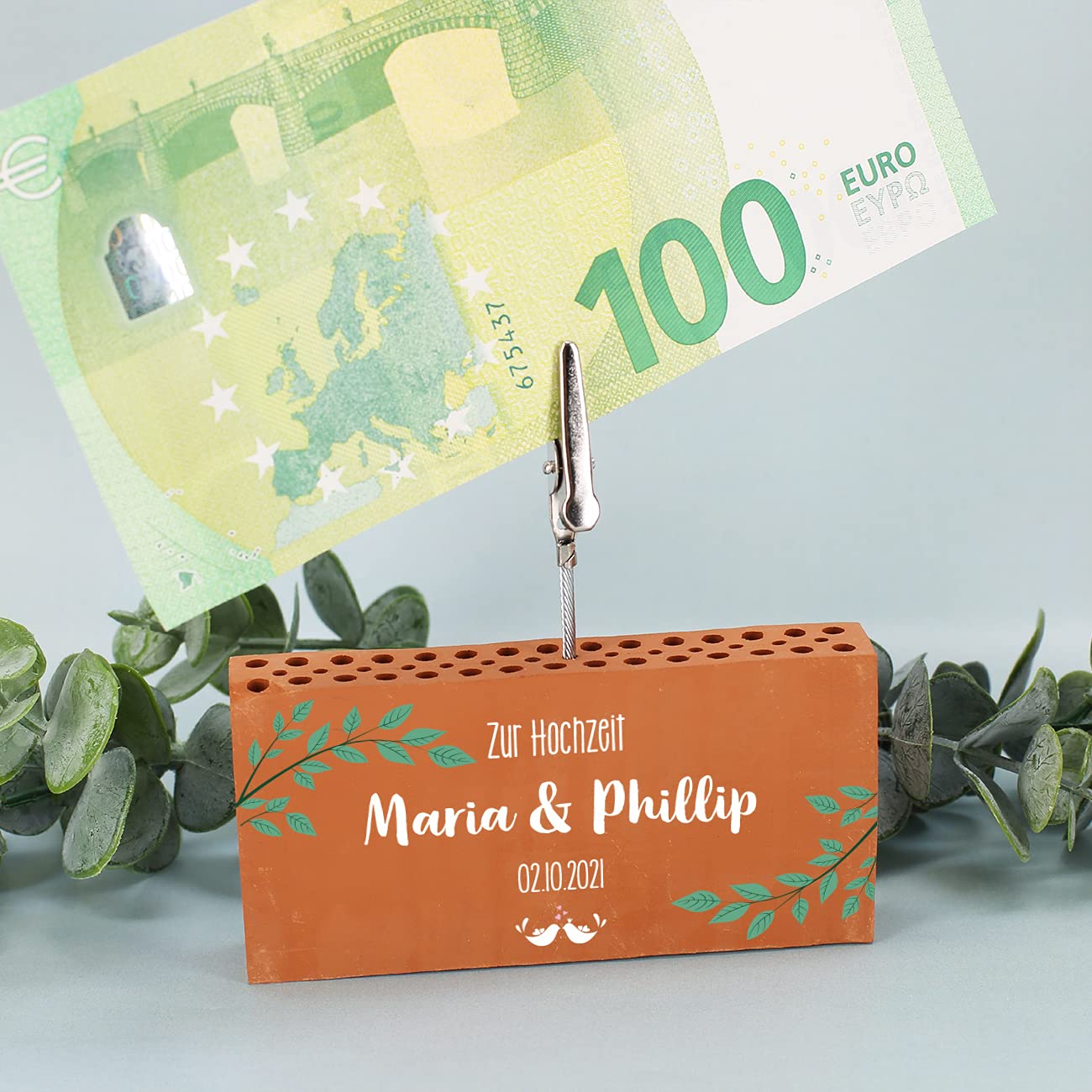 Geldgeschenk Ziegelstein Mit Clip - Personalisiert Für Hochzeit & Richtfest