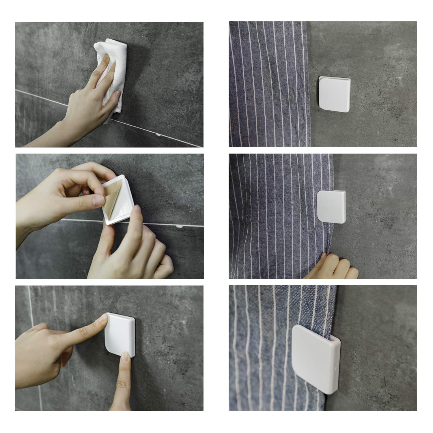 TSUOUKL Duschvorhang Clips 4-tlg - Selbstklebende Halterungen Gegen Spritzwasser