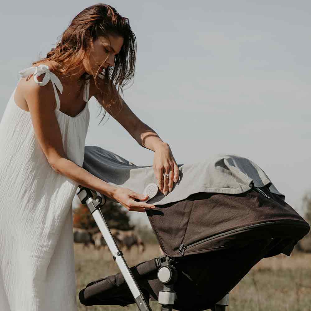 Super vielseitig einsetzbar: Als Sonnenschutz, Stilltuch, leichte Decke oder sogar als Spielunterlage. Die angebrachten Druckknöpfe ermöglichen einfache Befestigung als Sonnensegel.