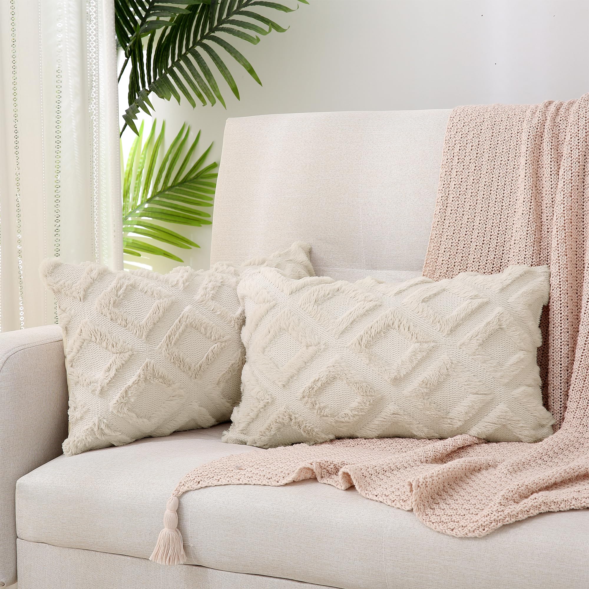 Kissenbezug 70x90 Cm 2er Set Samt - Beige Blumenmuster Für Wohnzimmer Und Schlafzimmer Deko