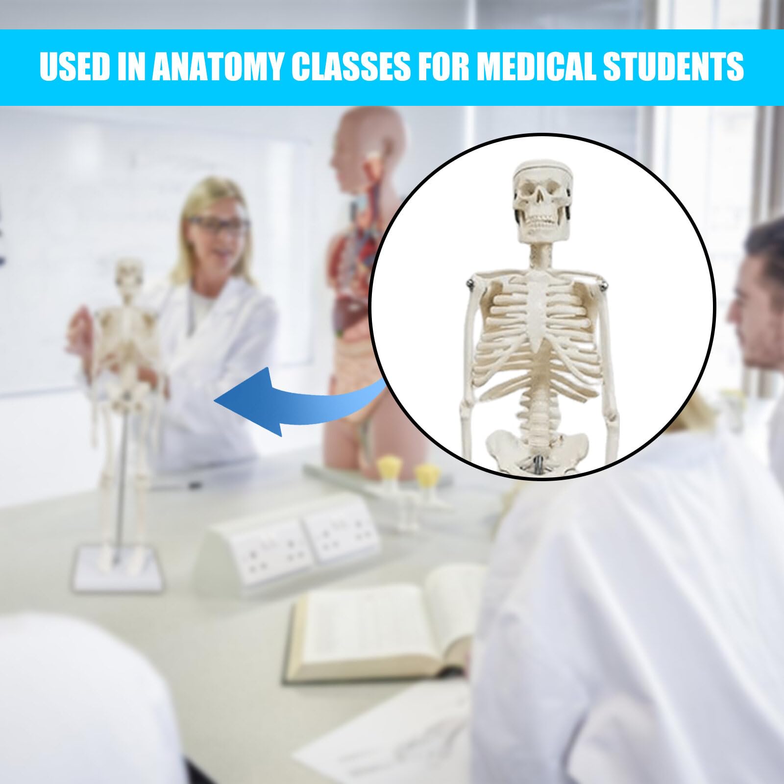 Fyearfly Mini-Skelettmodell Aus PVC - 45 Cm Bewegliches Anatomiemodell Mit Standfuß Für Medizinstudenten & Dekoration