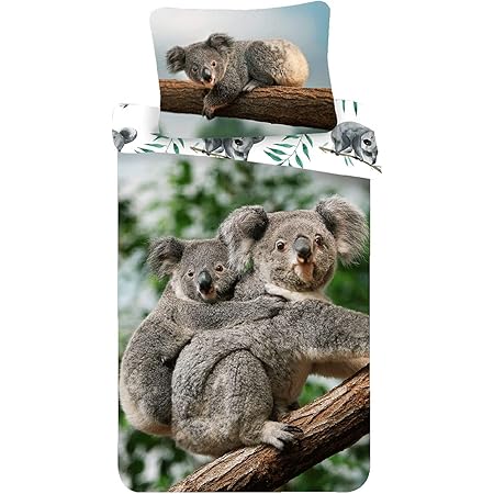 Süße Koalas kuscheln sich an den Baum - dieses niedliche Bettwäsche-Set bringt australisches Flair ins Kinderzimmer! Perfekt für Jungen, Mädchen und Teens, die Tiere lieben. \\n\\nDas Set besteht aus 100% Polyester-Mikrofaser - super weich und kuschelig, aber trotzdem robust. Die Waschmaschine kann nichts anrichten: Einfach bei kalter Temperatur waschen, aufhängen oder bei niedriger Temperatur trocknen. \\n\\nIm Lieferumfang: 1x Bettbezug 135x200 cm und 1x Kissenbezug 80x80 cm. Ohne Decke, aber die passt ja meist eh schon. Das 3D-Design sieht nicht nur cool aus, sondern macht auch richtig gute Laune beim Aufwachen. \\n\\nOb fürs eigene Zimmer, die Wohnheim-Unterkunft oder als Geschenk - diese Bettwäsche kommt immer gut an. Die Farben bleiben auch nach häufigem Waschen schön kräftig. \\n\\nDein Kind liebt Tiere und Natur? Dann ist dieses Koala-Set genau das Richtige! Mach das Schlafzimmer zu einem gemütlichen Rückzugsort mit Charakter.