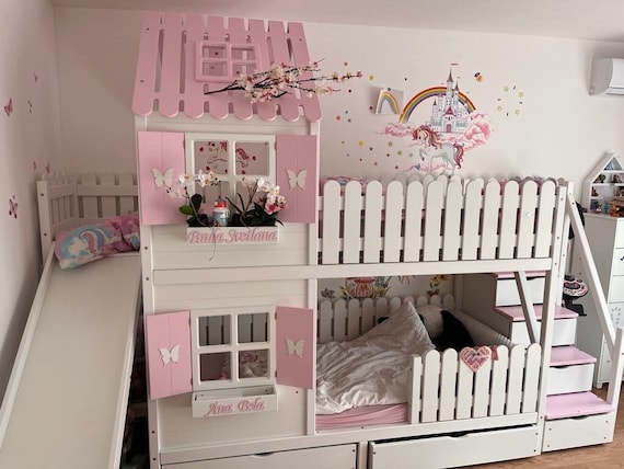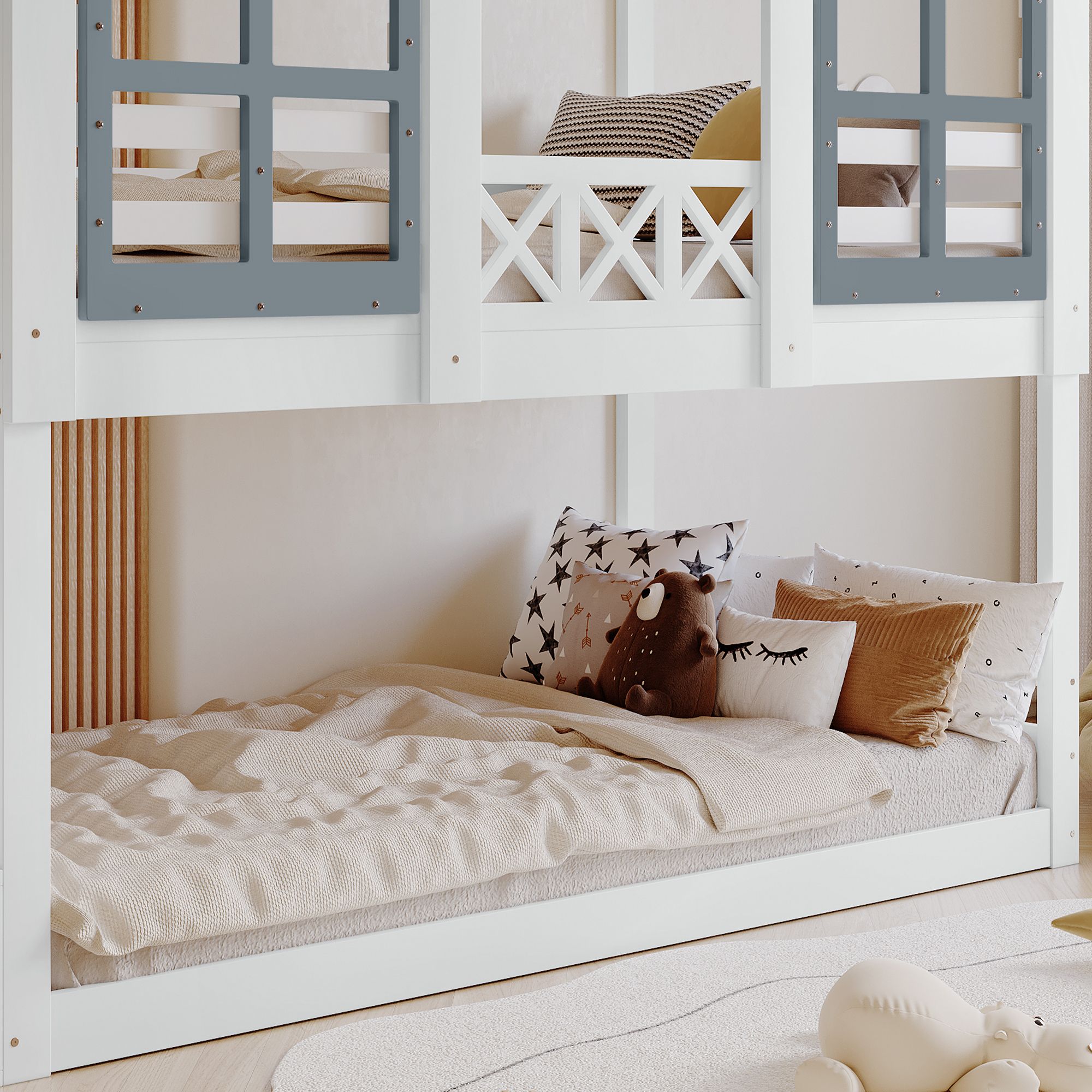 TOBIDOEN Haus-Etagenbett 140x200 Cm - Kinderbett Mit Rutsche & Dach Für 2 Kinder