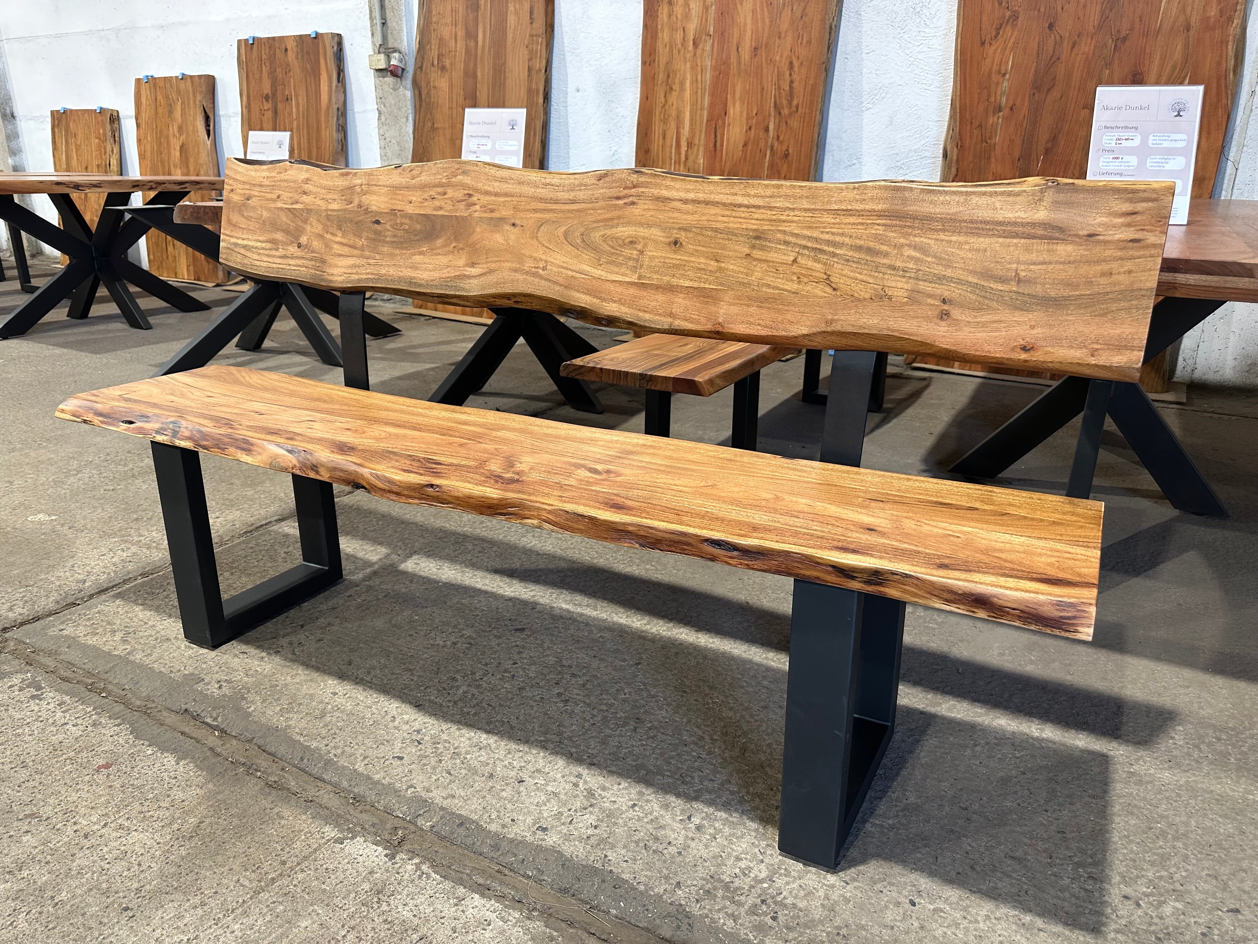 SAM Sitzbank Quintus 200x42 Cm - Massivholz Akazie Nussbaumfarben Mit Metallbeinen