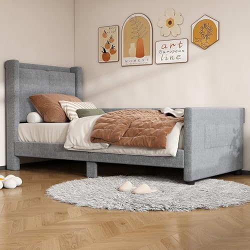Dieses Oslghy Polsterbett ist echt der Hammer! Nicht nur, dass es super bequem ist - es hat auch jede Menge coole Features. Die integrierte LED-Beleuchtung kannst du per App oder Fernbedienung steuern und zwischen buntem Ambiente-Licht und warmem Leselicht wechseln. Praktisch: Der USB-Port direkt am Bett, damit du dein Handy nachts laden kannst, ohne aufzustehen. Aber das Beste kommt noch: Unter dem Bett versteckt sich ein riesiger Stauraum mit Hydraulik-System - einfach hochheben und schon hast du Platz für Bettwäsche, Kleidung oder was auch immer. Der Metall-Lattenrost ist super stabil und hält echt was aus. Bezogen ist das ganze mit atmungsaktivem Leinenstoff in Grau, der sich weich anfühlt und leicht zu reinigen ist. Die abgerundeten Ecken sind perfekt fürs Kinderzimmer. Übrigens: Das Bett kommt in 3 Paketen - also kein Mega-Riesenpaket! Oh, und die Matratze ist nicht dabei, die suchst du dir selbst aus.