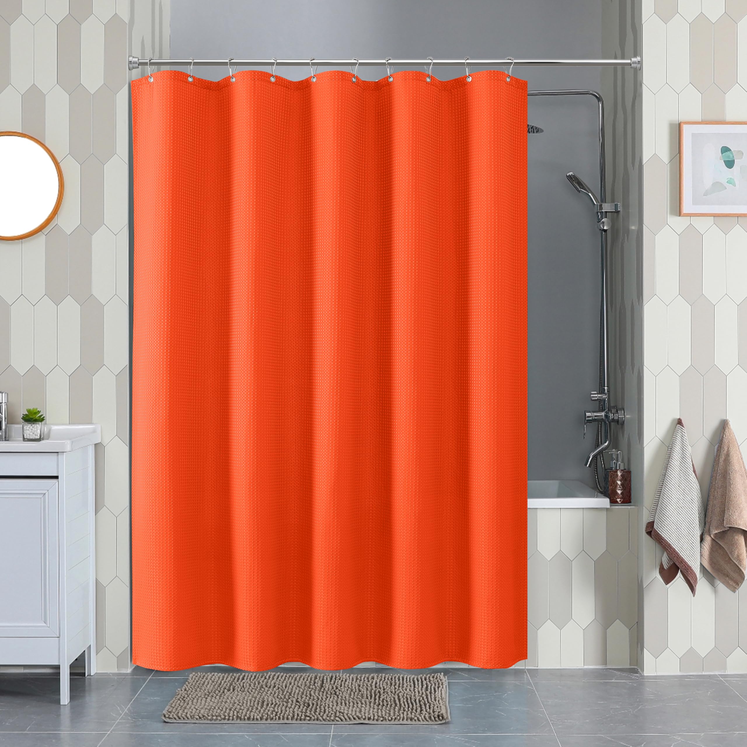 Waffle Duschvorhang 180x200 Cm - Wasserdichter Polyester Vorhang Mit 12 Haken