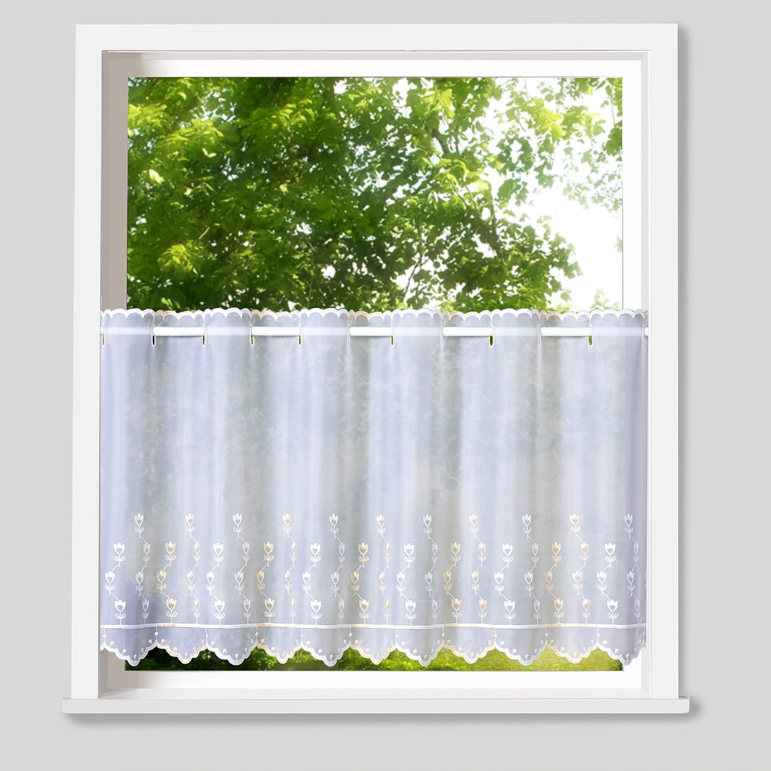 Mach dein Fenster zur weihnachtlichen Postkarte! Diese süße Gardine mit Rehen im Winterwald bringt sofort Adventsstimmung in dein Zuhause. Mit 45x120 cm passt sie perfekt in die meisten Fenster und sieht total gemütlich aus. Aus 100% Polyester und nach Öko-Tex Standard 100 zertifiziert - also unbedenklich für die ganze Familie. Die Gardine hat nen Tunnelzug für Stangen bis 16 mm Durchmesser und ist bei 30°C waschbar. Der hochwertige Digitaldruck zeigt detailreiche Rehe in verschneiter Landschaft - einfach zauberhaft! Ob im Wohnzimmer, Flur oder Kinderzimmer - damit wird jedes Fenster zum Hingucker. Einfach aufhängen und dich an der winterlichen Atmosphäre erfreuen. Perfect für alle, die's gemütlich mögen!