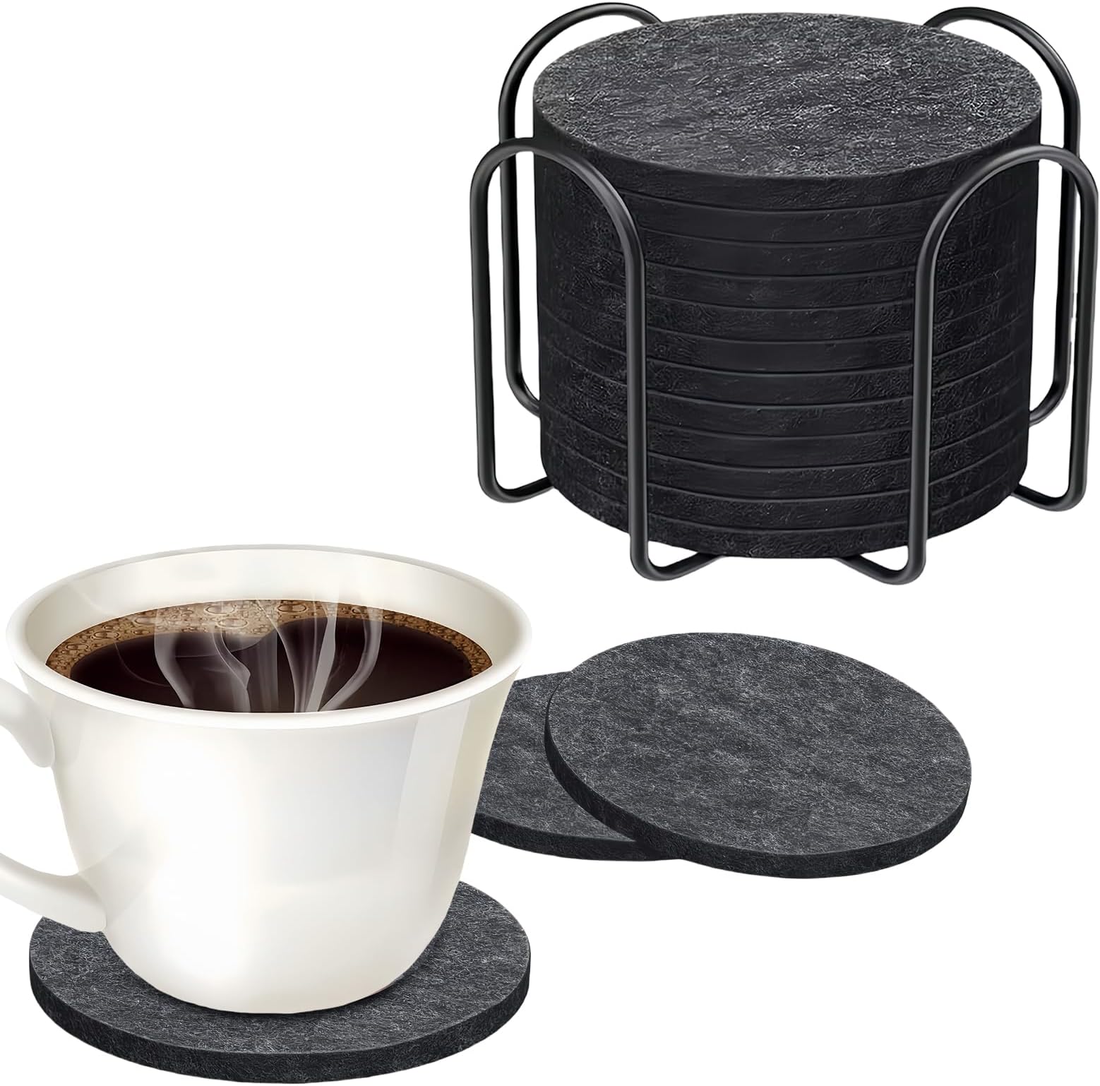 Wow, mit diesen 30 Filzuntersetzern machst du jeden Tisch perfekt! Aus hochwertigem Filz gefertigt, saugen sie Wasser und Kondensflecken super auf und schützen deine Möbel vor unschönen Flecken. Der klassische runde Durchmesser von 10 cm passt zu fast allen Gläsern, Tassen und Bechern. Die dunkelgraue Farbe ist dezent und passt zu jeder Einrichtung - ob modern, landhaus oder skandinavisch. Einfach zu reinigen (auch in der Maschine!) und immer wieder verwendbar. Ob für die nächste Party, im Büro, im Café oder einfach zu Hause - mit diesen Coasters sieht alles gleich viel stylischer aus. Auch als Geschenk super - wer freut sich nicht über praktische Deko?