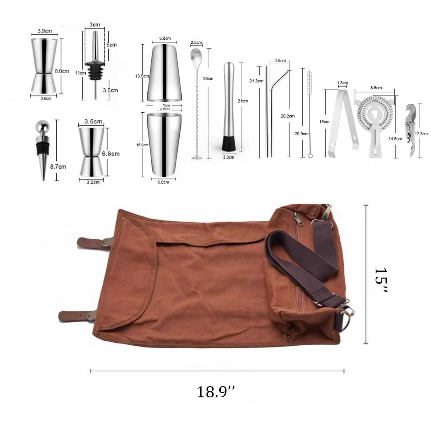 Leapiture Cocktail-Shaker Tasche - Komplettes Barkeeper Set Für Unterwegs