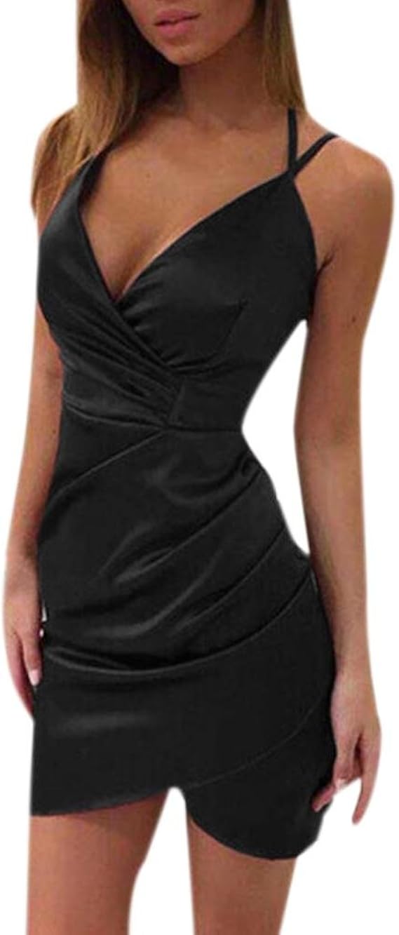 Missufe Damen Cocktailkleid - Wickelkleid Ärmellos Mit Herz-Ausschnitt, Elegant Kurz
