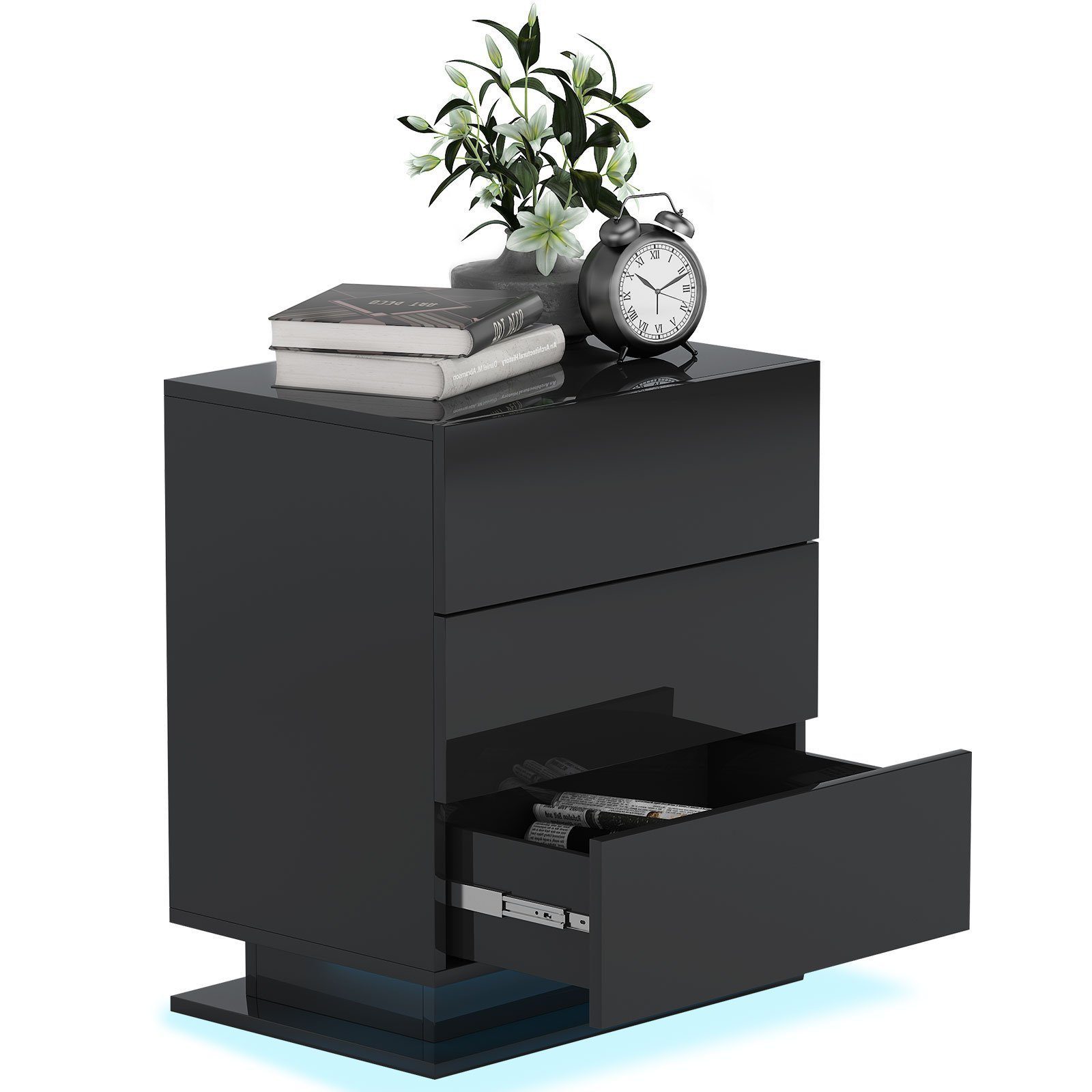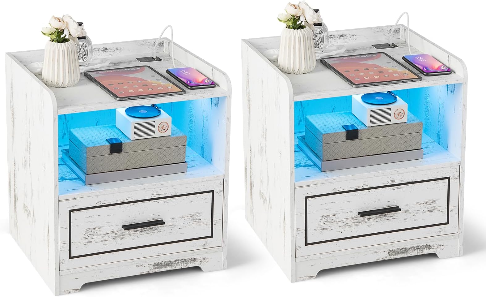 Coleshome Nachttisch Mit Steckdose & USB - 10 Farben LED, 2 Schubladen Weiß