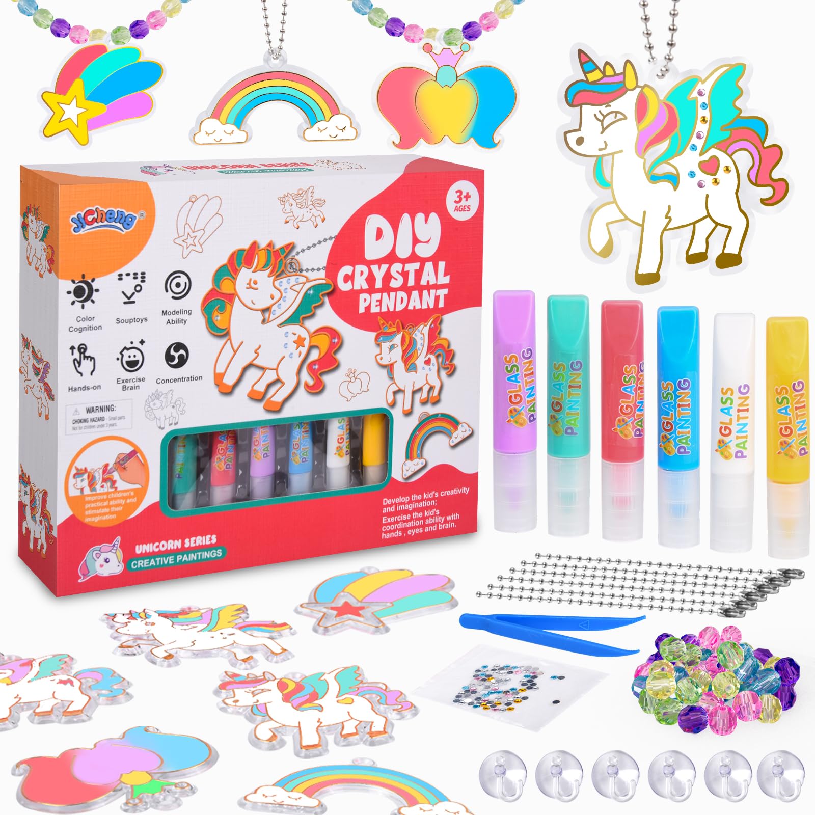 Mama, Papa - seid ihr auf der Suche nach dem perfekten Beschäftigung für eure Kids? Unser Sealilac Window Color Set bringt stundenlangen kreativen Spaß! Mit den 6 knallbunten Farben können Kinder ganz easy bunte Sonnenfänger und coole Anhänger gestalten. Das Besondere: Die fertigen Kunstwerke lassen sich nicht nur mit den beiliegenden Saugnäpfen ans Fenster kleben, sondern auch zu süßen Armbändern, Halsketten oder Schlüsselanhängern weiterverarbeiten! Im Set ist alles dabei was kleine Künstlerherzen höher schlagen lässt: 6 Acryl-Anhänger, 6 Farbtuben, 50 bunte Perlen, glitzernde Diamant-Aufkleber, Ketten, transparente Schnüre und sogar eine Pinzette für die Feinarbeit. Die Farben sind absolut unbedenklich, einfach zu verarbeiten und trocknen schnell an der Luft. Perfekt für Regentage, Kindergeburtstage oder einfach mal zum Abschalten. Übrigens: Das Basteln fördert nicht nur die Kreativität, sondern auch die Feinmotorik und Konzentration. Ein super Geschenk für alle Kinder ab 3 Jahren! Also worauf wartet ihr? Lasst die Bastelparty beginnen!