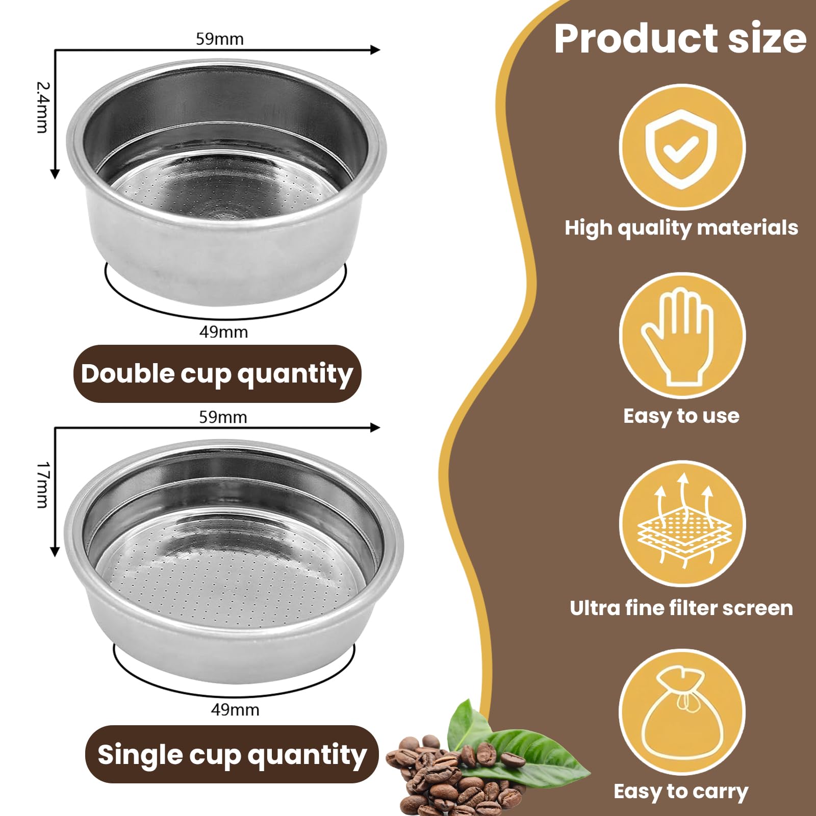Perfekter Espresso? Mit diesem Convex Filterkorb wird's möglich! Speziell für 51mm Espressomaschinen von DeLonghi, La Specialista und Dedica entwickelt. Aus hochwertigem Edelstahl AISI 304, rundum blank poliert für einfache Reinigung. Die zylindrische Form verjüngt sich nach unten und schafft so eine kompakte Kaffeekapsel für bessere Extraktion. Flacher Boden für gleichmäßigen Wasserdurchlauf. Verstärkt die natürliche Süße des Kaffees, besonders bei mittleren bis dunklen Röstungen. Bei Dedica muss der Kunststoffsockel entfernt werden. Für professionelle Espresso-Ergebnisse zu Hause!