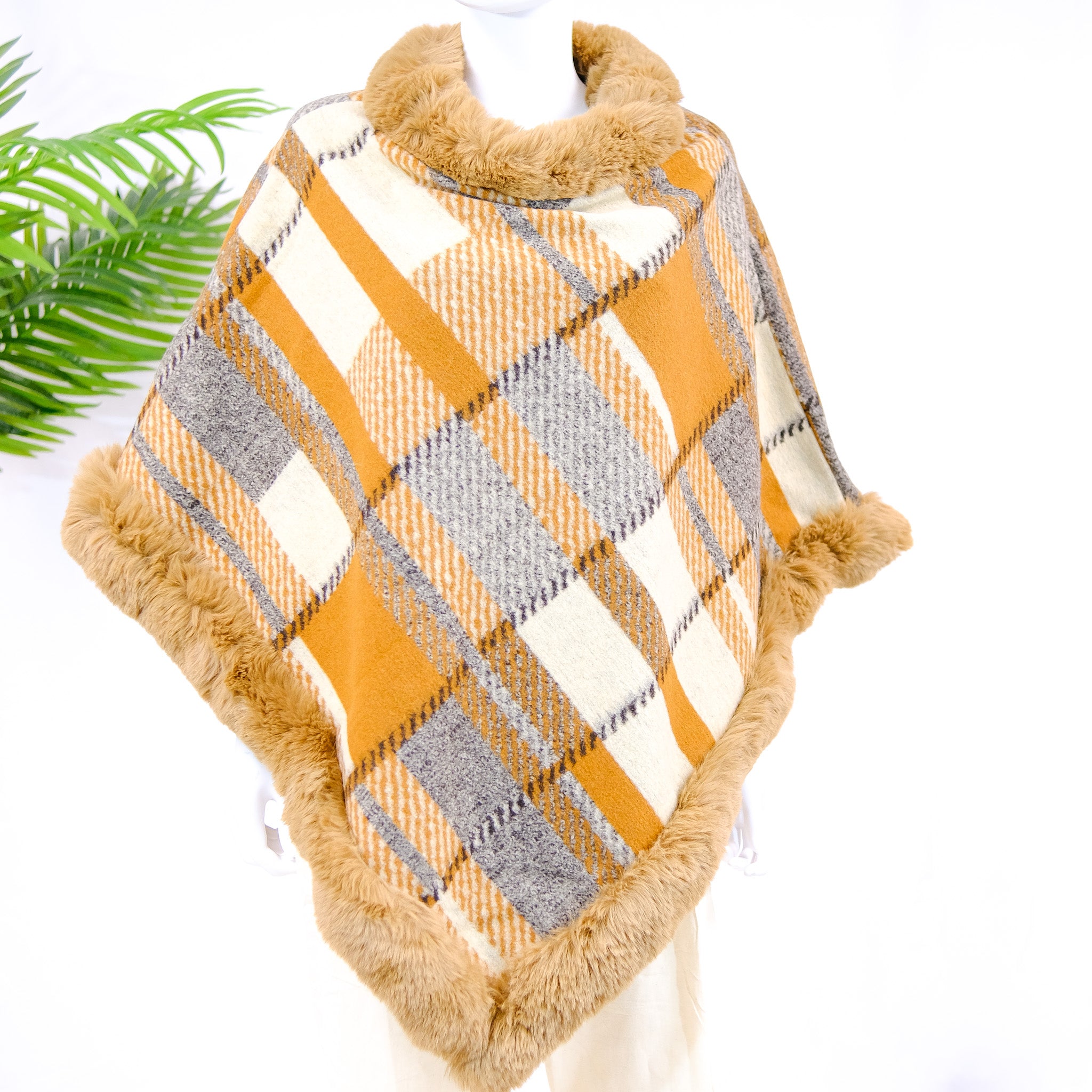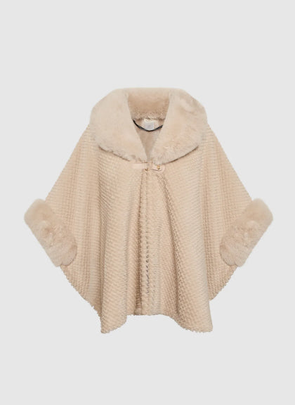 Cool&D Damen Poncho Winter Cape - Tweed Mit Plüschfutter Und Kunstfell Kragen