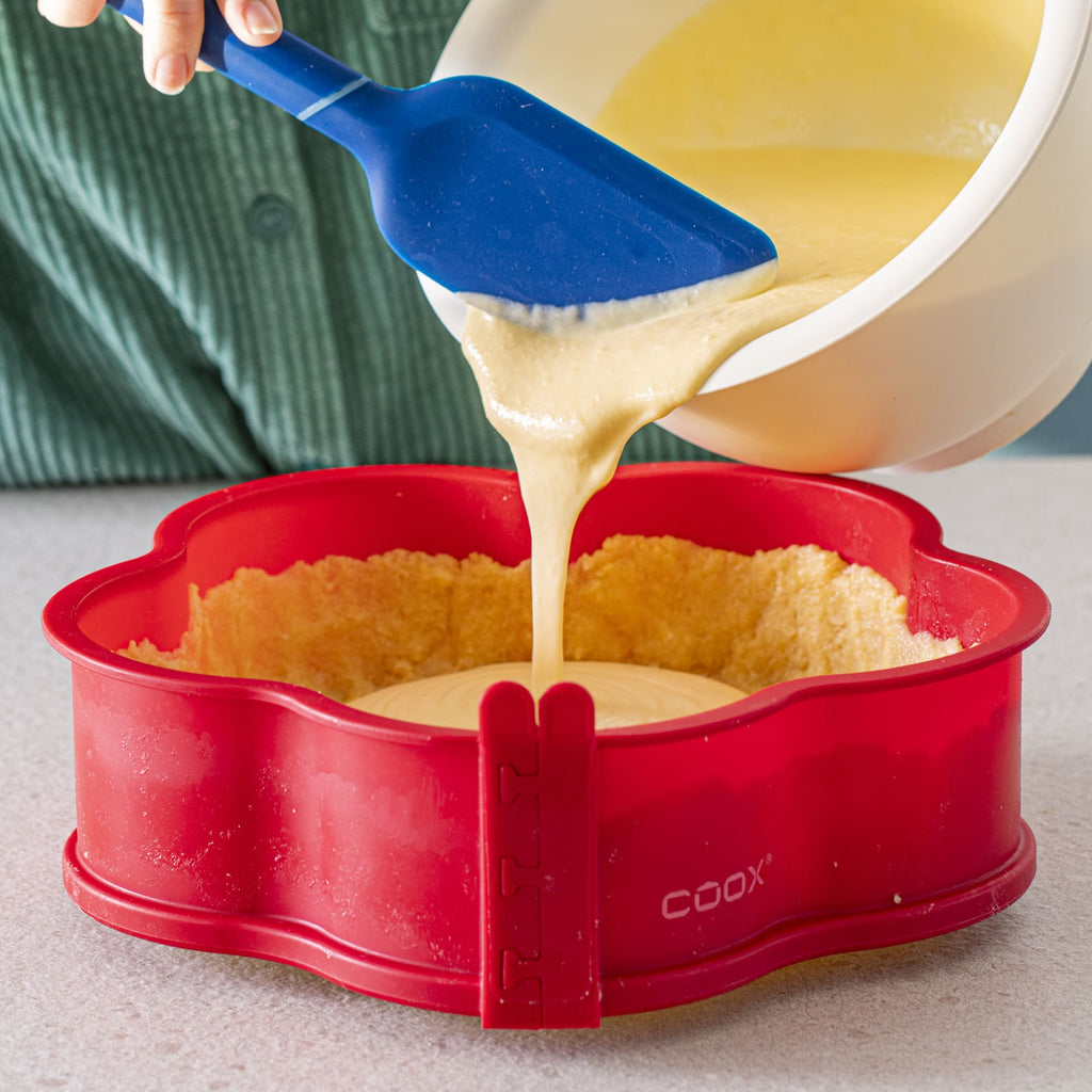 Wow, diese coox Quicheform revolutioniert das Backen! Mit Glasboden Ø26cm und praktischen Glasfüßen - backen, servieren und schneiden alles in einem! Kein lästiges Umsetzen mehr: Einfach den Silikonring abnehmen und schon ist deine Kreation servierfertig. Die antihaftbeschichtete Oberfläche macht Einfetten überflüssig. Spülmaschinenfest und von -40°C bis 230°C geeignet - also auch für die Gefriertruhe! Super platzsparend in der Aufbewahrung. Perfekt für Quiches, Tartes, Kuchen - ob süß oder herzhaft. Die Glasfüße sorgen für sicheres Handling und sehen dazu noch stylisch aus. Einfach reinigen unter warmem Wasser oder in die Spülmaschine. Macht das Backen zum puren Vergnügen und spart Zeit und Nerven! Endlich kein Ärger mehr mit dem Stürzen von Kuchen - einfach aufstellen und genießen! Deine Gäste werden begeistert sein!