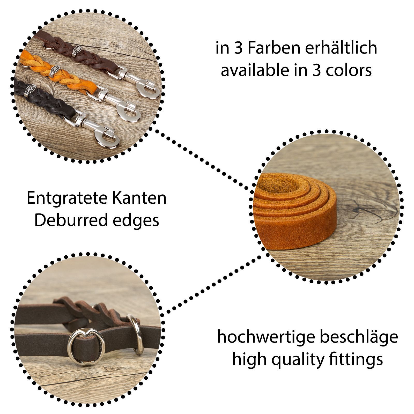 Suchst du eine robuste Leine für deinen Vierbeiner? Diese Lederleine von CopcoPet ist ein echter Klassiker! Aus echtem Rindleder handgeflochten - made in Germany! Mit 1,50m Länge und 15mm Breite perfekt für mittelgroße bis große Hunde. Das coole Feature: Zwei Handgriffe! Den kurzen nutzt du für bessere Kontrolle in der Stadt, den langen für entspannte Spaziergänge. Der stabile Chrom-Karabiner hält sicher am Halsband oder Geschirr. Wird mit der Zeit noch schöner und geschmeidiger - einfach ab und zu mit Lederfett pflegen. Am Anfang kann sie etwas abfärben, das ist normal. Für Training, Alltag oder Hundesport - diese Leine begleitet euch zuverlässig!