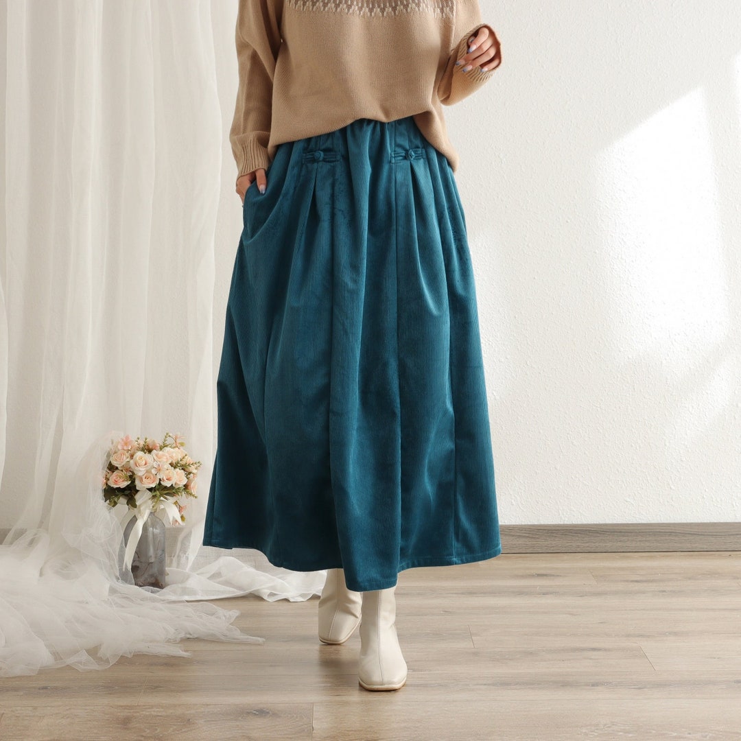 Cord Rock Hoch Tailliert - Modischer Wickelrock Mit Knopfverschluss
