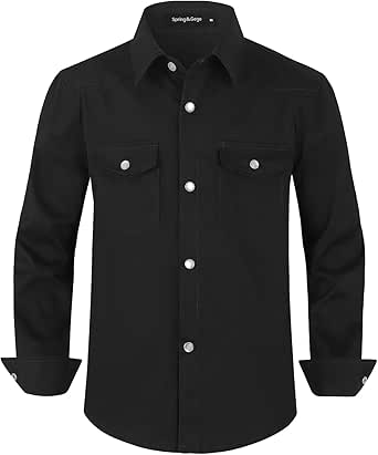 Spring&Gege Jungen Cordhemd Western-Style - Langarm Shacket Mit Perlen-Druckknöpfen
