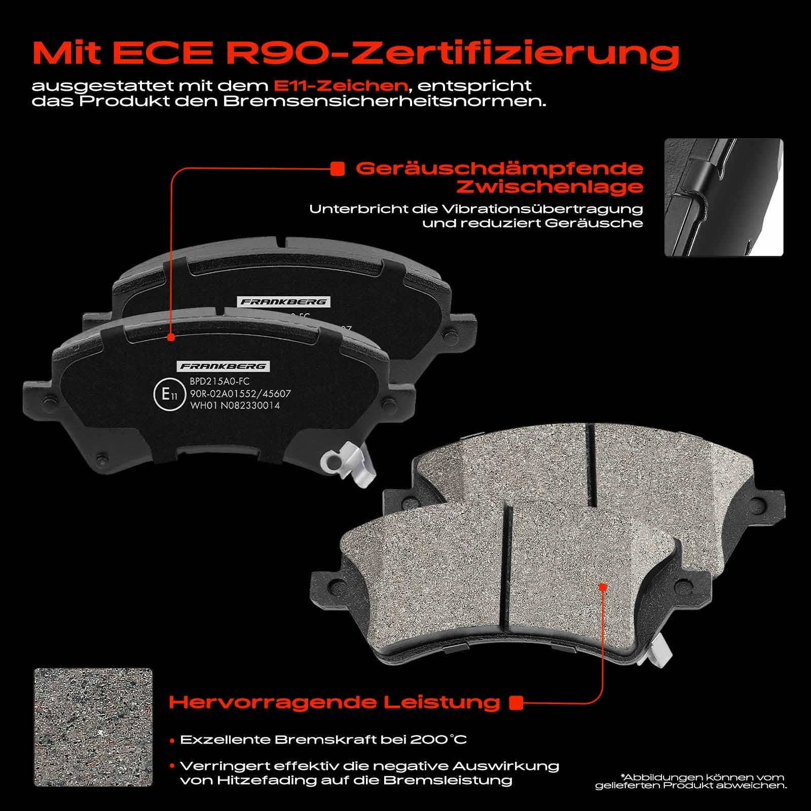 Frankberg Bremsbeläge Vorne Für Toyota Corolla E12 2001-2007 - 4-tlg. Satz Mit Verschleißwarnung