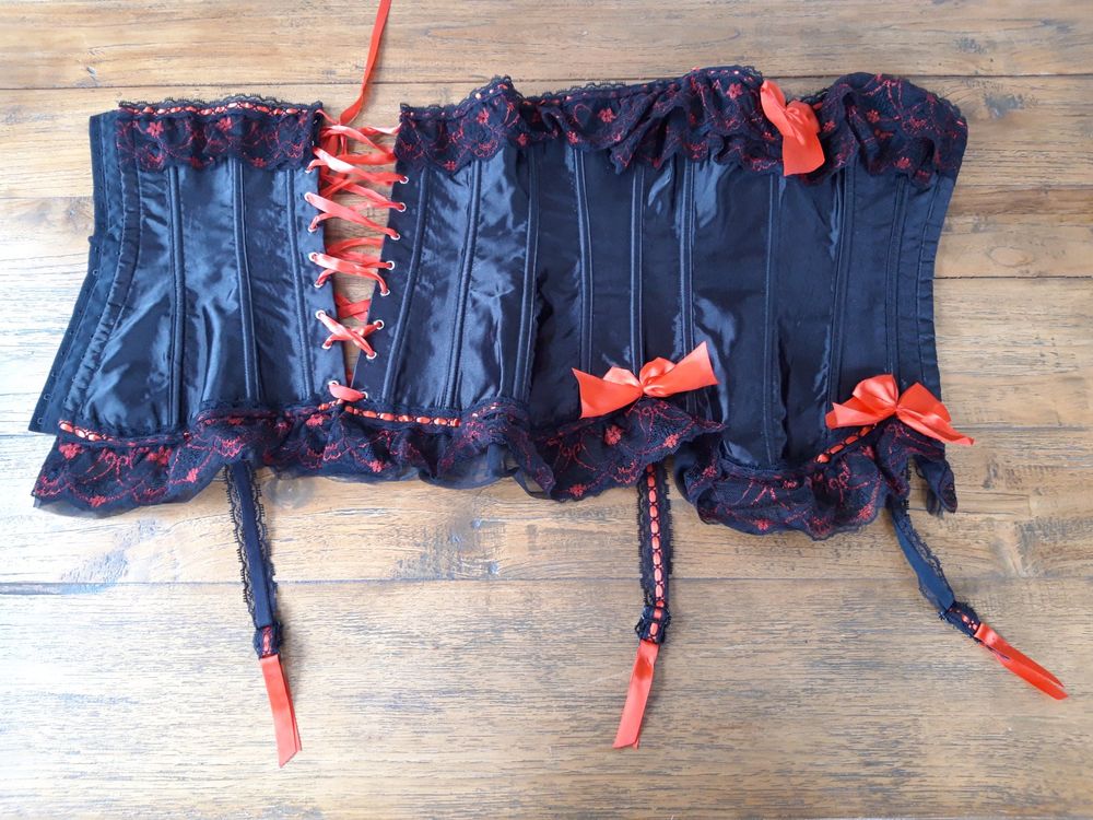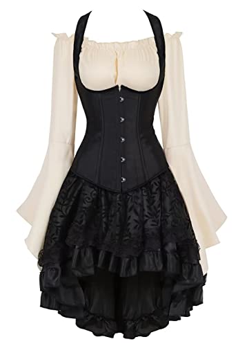 Siehst du aus wie aus nem Vampir-Film! Dieses Korsettkleid ist der absolute Hingucker. Mit Spitze, Stickerei und verstellbarer Schnürung - passt sich jeder Figur an. Vorne Stahl-Bügel für perfekte Taillenbetonung. Größen von S bis 6XL - bitte Taille messen, nicht Amazon-Tabelle verwenden! Perfekt für Halloween, Partys, Hochzeiten, Cosplay oder Club. Macht sofort diese sexy Sanduhr-Figur. Aus Polyester und Elasthan - bequem zu tragen. Komplett-Set inklusive Rock. Ob Burlesque, Steampunk oder einfach nur stylisch - mit diesem Kleid fällst du definitiv auf!