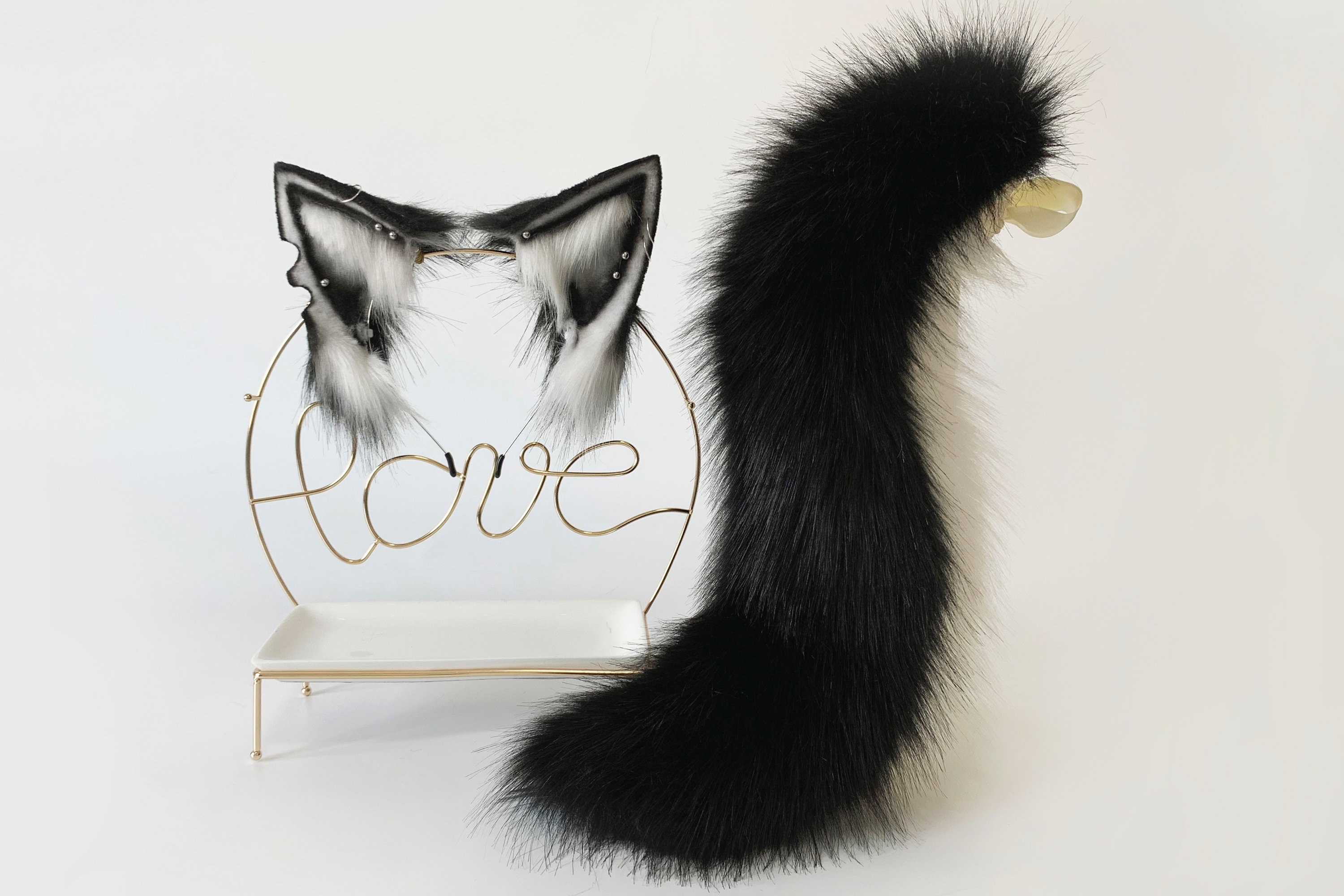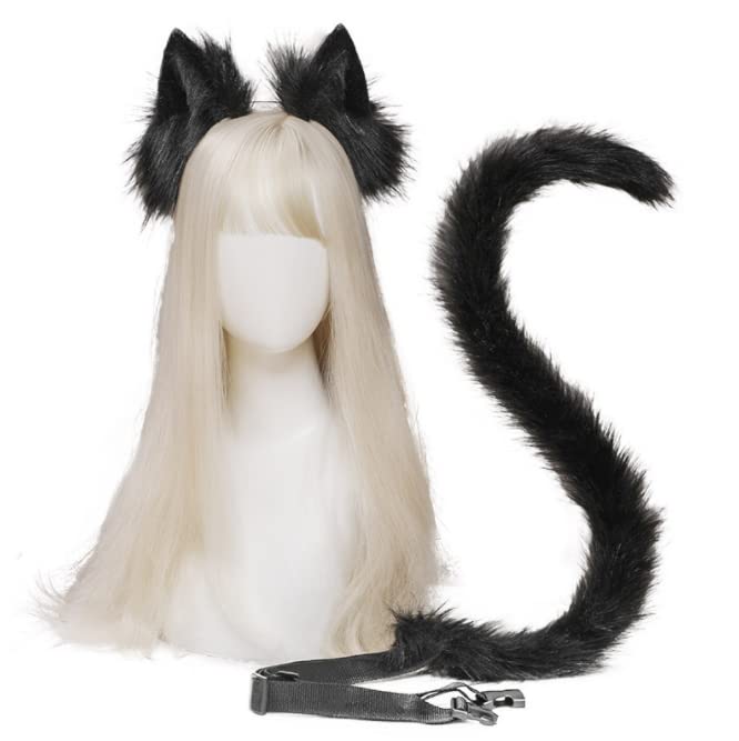 Katzenohren & Schwanz Set Aus Kunstfell - Flauschiges Cosplay Kostüm Für Halloween & Karneval