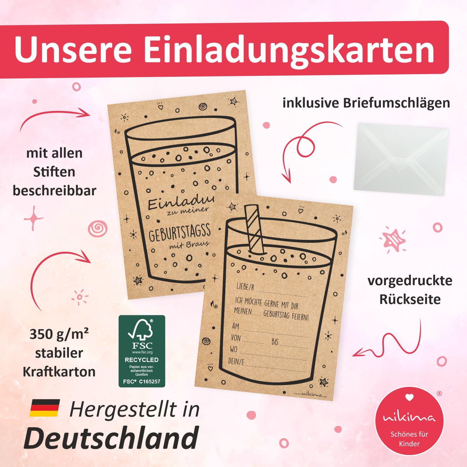 Cosswe 15-tlg. Einladungskarten Kindergeburtstag - Kraftpapier Mit Umschlägen