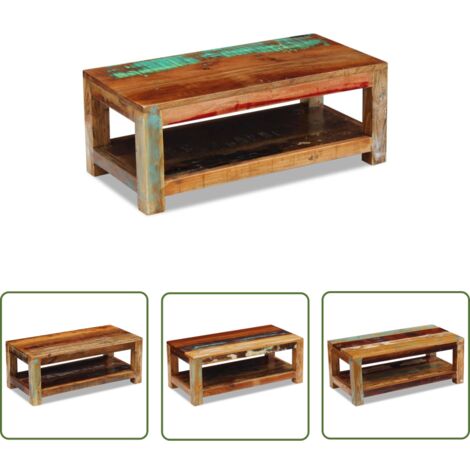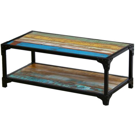QJBSAVVA Couchtisch Aus Altholz 90x50x38cm - Vintage Look Mit Eisen Gestell