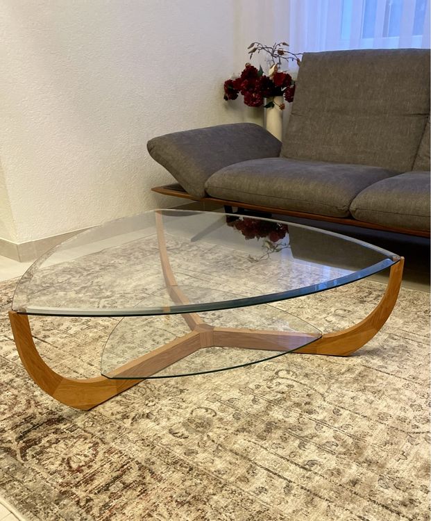 TWSOUL Dreieckiger Couchtisch Glas - Moderner Wohnzimmertisch Mit Holz Base