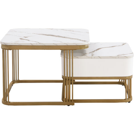 Couchtisch Set 2-tlg Halbmondförmig - Stapelbar Mit Schubladen Weiß