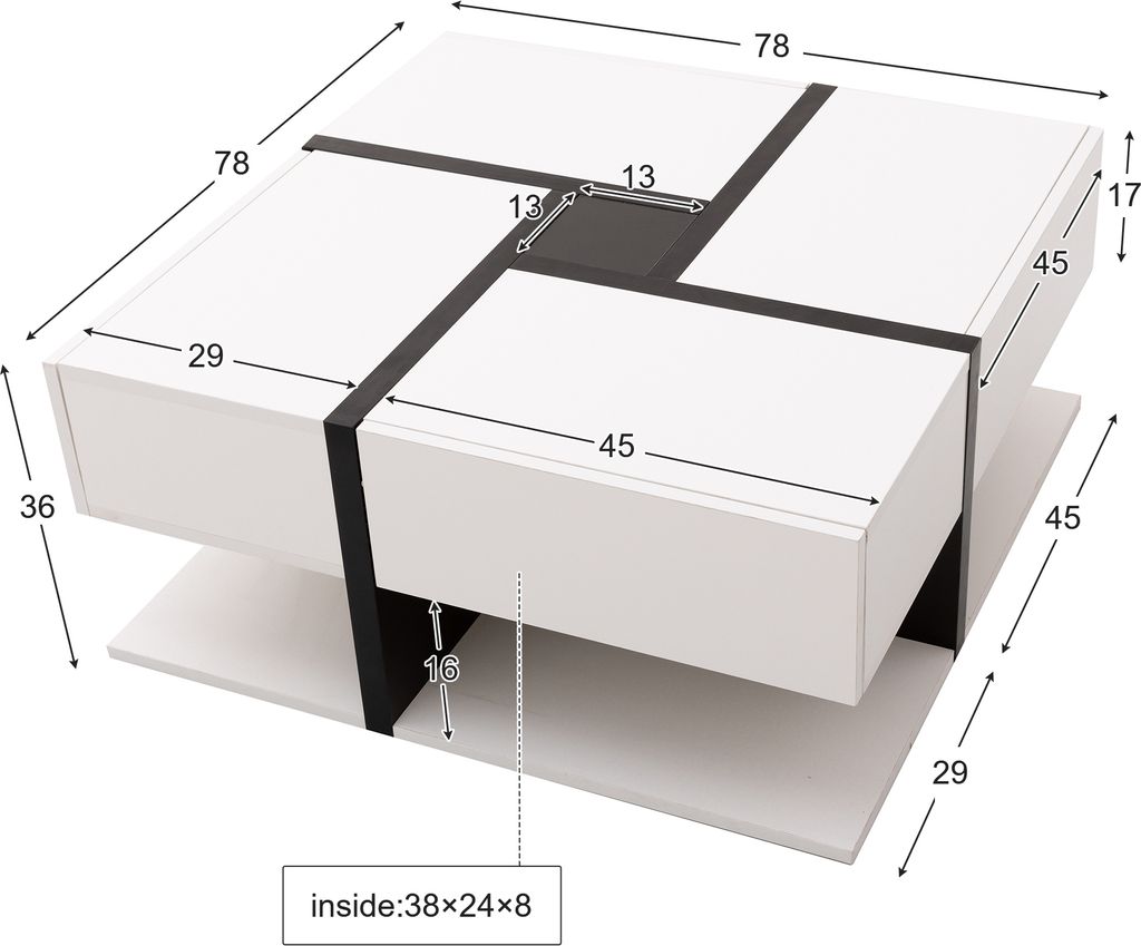 Apollo BEN Couchtisch Weiß - Quadratisch 78x78cm Mit Drehbarer Platte & Ablage