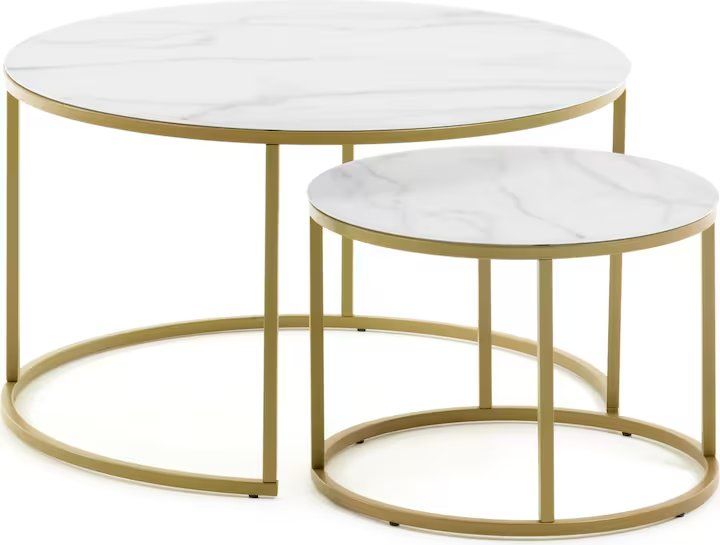 Stylisches 2er-Set Couchtische mit edler Marmor-Optik! Die robusten Tischplatten sind kratzfest, hitzebeständig und pflegeleicht. Das stabile Metallgestell in Schwarz oder Gold sorgt für modernes Flair. Perfekt stapelbar und platzsparend - ideal für Wohnzimmer, Schlafzimmer oder Arbeitszimmer. Mit abgerundeten Ecken besonders sicher für Familien mit Kindern. Maße: 80x80x45 cm & 60x60x35 cm. Einfache Montage - sofort einsatzbereit für mehr Stauraum und Style in deinem Zuhause!