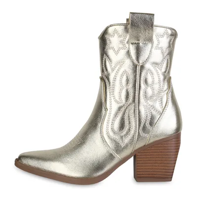 VAN HILL Damen Cowboystiefel Gefüttert - Kunstleder Stiefel Mit Trichterabsatz