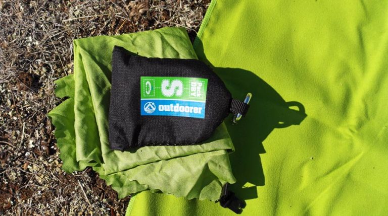 Mit den Maßen 110x60 cm ist es groß genug für den ganzen Körper, lässt sich aber trotzdem winzig klein zusammenrollen. Die praktische Aufhängeschlaufe ermöglicht das Trocknen an jedem Haken oder Ast.