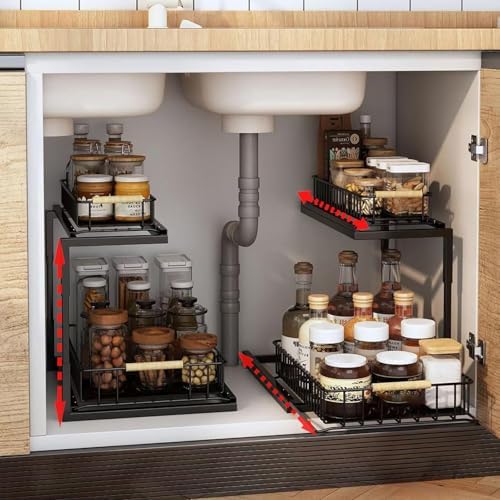 Creahaus Küchen Organizer Unter Waschbecken - 2-etagiger Schrankorganizer Schwarz