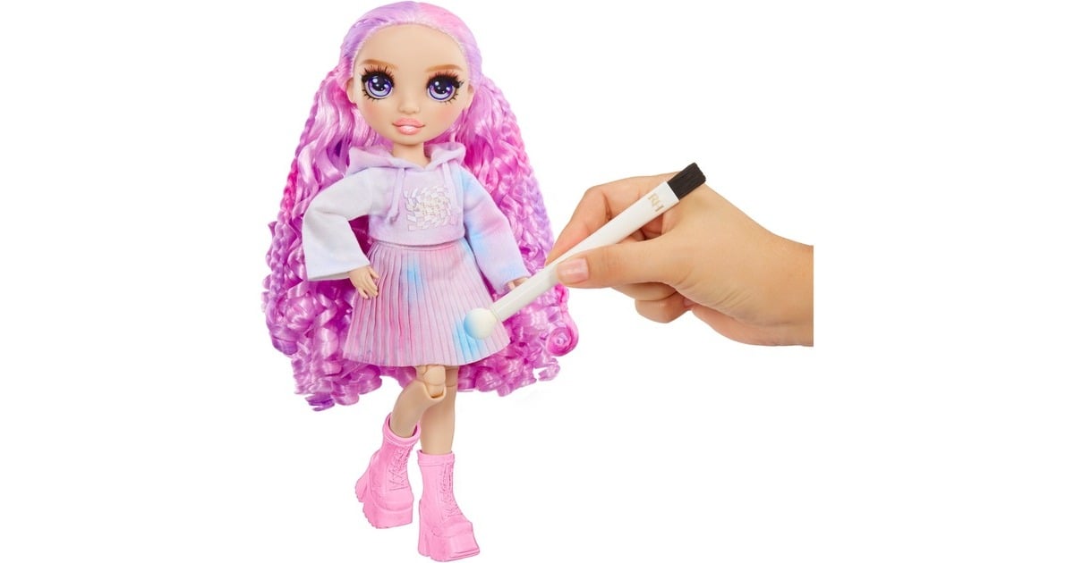 Wow, was für ein cooles Spielzeug! Diese Rainbow High Puppe ist wie eine leere Leinwand - komplett in Weiß mit weißem Haar, die du nach deinen Vorstellungen gestalten kannst. Mit dem Airbrush-Set und den vier abwaschbaren Filzstiften (Rot, Gelb, Blau, Lila) kannst du Haare, Outfit und sogar die Schuhe bunt besprühen. Oder du malst direkt mit den Stiften detaillierte Muster drauf. Das Beste: Alles ist abwaschbar! Wenn dir das Design nicht mehr gefällt, einfach waschen und neu anfangen. Drei verschiedene Puppen mit grauen, grünen oder lila Augen sind erhältlich - sammle sie alle! Perfekt für Kinder von 4-12 Jahren, um Kreativität und Selbstvertrauen zu fördern. Einfach Filzstift einsetzen, sprühen und zuschauen, wie sich die Puppe verändert. Danach kannst du natürlich ganz normal mit ihr spielen. So macht Basteln und Gestalten richtig Spaß - immer wieder neu!