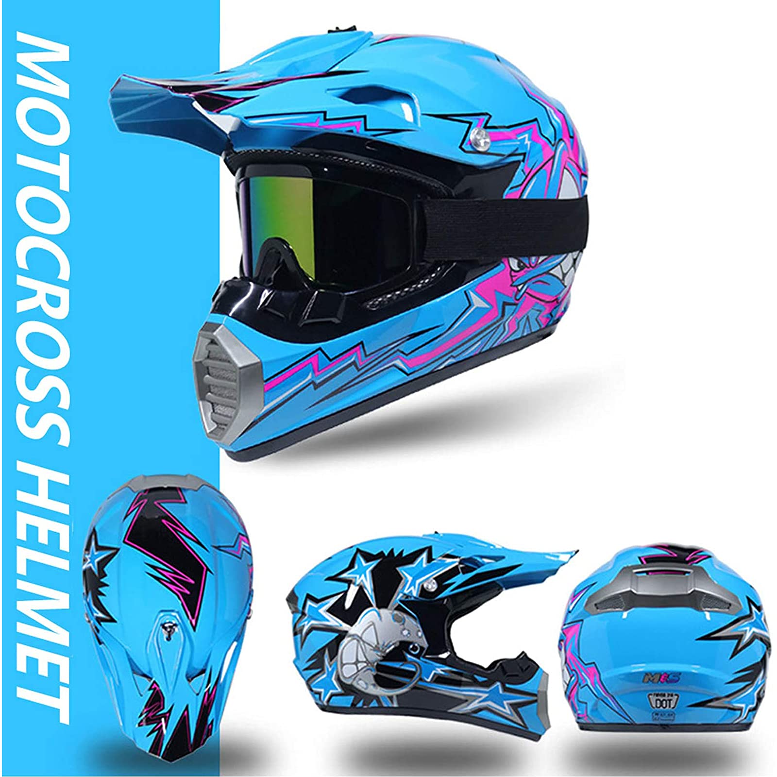 Motorradhelm Kinder Fullface - MTB Crosshelm Mit Handschuhen & Brille