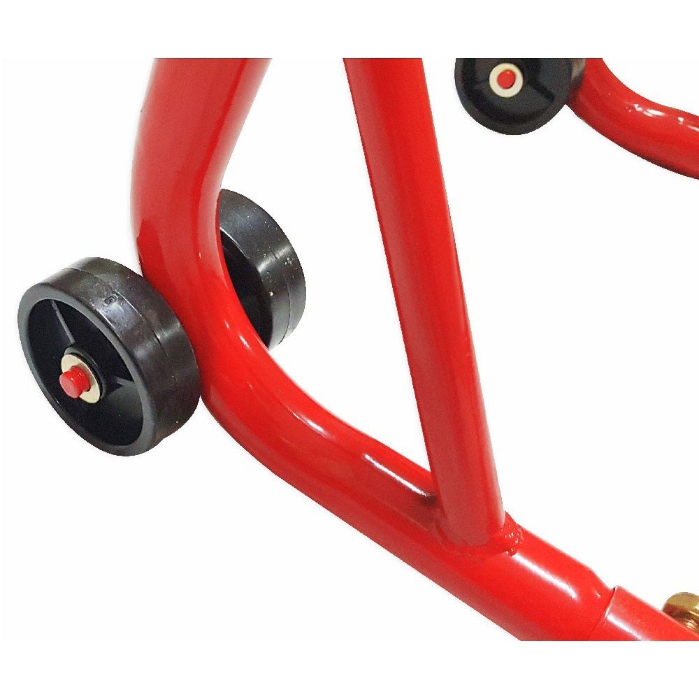 Deine MV Agusta verdient den besten Ständer! Dieser einarmige Hinterbauständer von Cruizer ist speziell für F3 und F4 Modelle mit 32mm Rohrdurchmesser gemacht. Die 2mm starke, pulverbeschichtete Polyester-Konstruktion bietet maximale Stabilität. Mit Kugellagern für smooths Drehen des Hebekopfes - super praktisch bei Reifenwechsel oder Wartungsarbeiten. Die Gummiräder schützen deinen Boden, und die Stifthalterung hält alles sicher an Ort und Stelle. Ein professionelles Teil für jeden MV Agusta Besitzer, der Wert auf Qualitätszubehör legt. Damit steht dein Bike sicher und stabil!