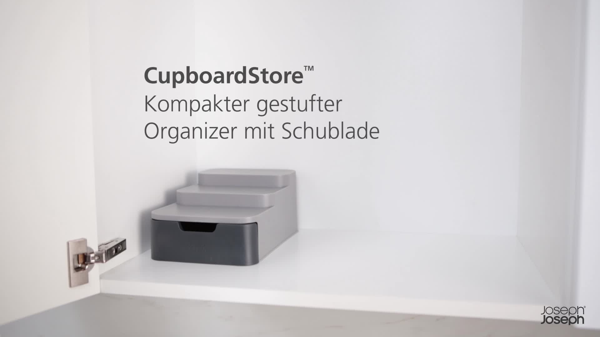 Dieses Joseph Joseph CupboardStore Schrankregal ist die Lösung für mehr Stauraum in deinen Küchenschränken! Einfach zusammenzusetzen und sofort einsatzbereit. \\n\\nDas geniale daran: Es lässt sich ausziehen und an den vorhandenen Platz anpassen. So nutzt du den Schrankraum optimal aus! Die strukturierte Oberfläche und der erhabene Rand verhindern, dass Dinge abrutschen. \\n\\nDie ausklappbaren Beine aus Edelstahldraht sorgen für stabilen Stand. In Grau gehalten, passt es zu jeder Kücheneinrichtung. \\n\\nPerfekt für Vorräte, Gewürze, Konserven oder Küchenutensilien. Schafft eine zusätzliche Ebene in deinen Schränken und macht alles übersichtlicher. Endlich kein Chaos mehr in der Küche!