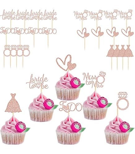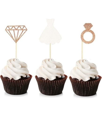 Mach deine Torten und Cupcakes zum absoluten Hingucker! Diese 32 rosegoldenen Glitzer-Ringe sind perfekt für Hochzeiten, Brautpartys, Jubiläen oder Geburtstage. Aus hochwertigem Glitzerkarton und Zahnstochern in Lebensmittelqualität - also absolut unbedenklich. Einfach in die Cupcakes stecken und schon sehen sie umwerfend aus! Das Set enthält verschiedene Motive: Diamantringe, Herzen, Kleider und Buchstaben. Die Glitzeroberfläche reflektiert das Licht wunderschön und sorgt für eine magische Atmosphäre. Perfekt für thematische Partys - deine Gäste werden begeistert sein!