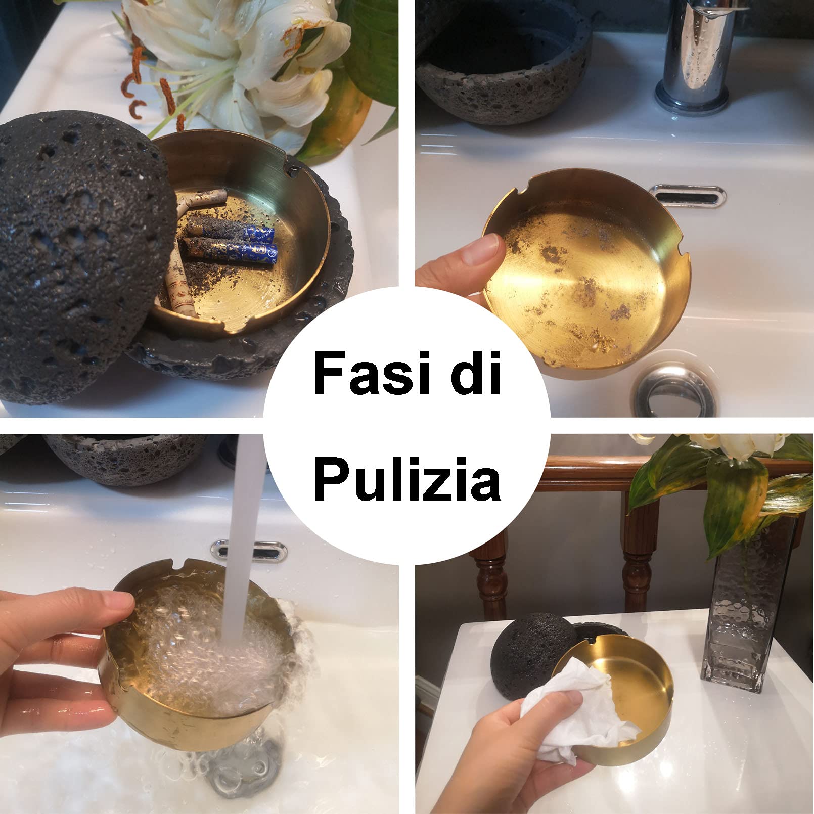 Endlich Ordnung auf Terrasse und Balkon! Dieser stylische Aschenbecher aus Zement und Edelstahl sieht nicht nur gut aus, sondern ist auch super praktisch. Mit Deckel, der unangenehme Gerüche sicher einschließt. Die Ausnehmungen am Rand halten Zigaretten sicher abgelegt. Es gibt zwei Größen: Groß mit 12,5cm Durchmesser und 11,2cm Höhe oder klein mit 10,5cm Durchmesser und 9,2cm Höhe. Das Gewicht macht ihn windstabil und die rutschfeste Matte schont deine Tische. Perfekt für Zuhause, Büro, Hotel oder Bar - auch als Geschenk ideal!