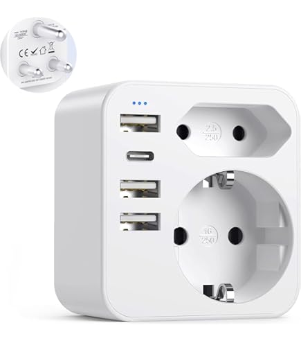 Perfekt für deine nächste Reise! Dieser LENCENT Adapter kombiniert Typ D und G Stecker - ideal für Länder wie Malediven, Sri Lanka, Tansania, Ghana und viele mehr. Mit 2 USB-C (15W) und 2 USB-A (12W) Anschlüssen kannst du gleich mehrere Geräte parallel laden. Der klappbare Stecker spart Platz in der Reisetasche - nur 7,5x7,2x5,2cm klein und super leicht. Bis zu 2500W Leistung für Typ D und 3250W für Typ G - da kannst du auch stärkere Geräte wie Haartrockner oder Rasierer anschließen. Aber Achtung: Das ist nur ein Adapter, kein Spannungswandler! Deine Geräte müssen 100-250V vertragen. Praktisch für Smartphones, Powerbanks, Kameras und andere Elektronik. Macht das Laden im Ausland so einfach - einfach Stecker ausklappen, einstöpseln und los geht's. Ein echter Allrounder für alle, die viel reisen!