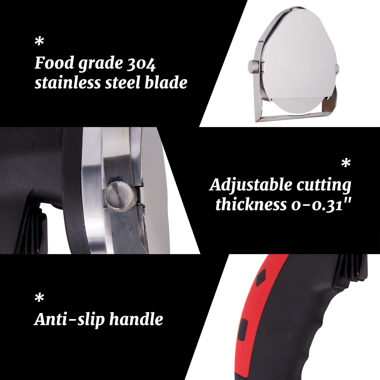 Schneide Fleisch wie ein Profi! Dieser elektrische Dönerschneider aus 304 Edelstahl macht das Schneiden von Döner, Gemüse und Aufschnitt zum Kinderspiel. Mit 80W Motorleistung und 2800-3000 U/min meistert er auch größere Mengen. Die zwei beiliegenden Klingen (Scheibe und Zahnrad) bieten maximale Flexibilität. Die Schnittstärke ist von 0-8mm einstellbar - perfekt für dünne Scheiben oder kräftige Stücke. Einfach zu reinigen und absolut hygienisch. Ideal für Dönerbuden, Restaurants oder ambitionierte Hobbyköche. Inklusive Schleifstein für scharfe Klingen!