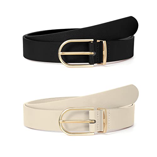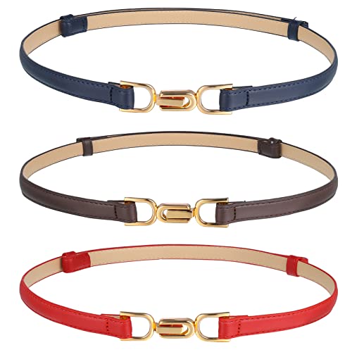 LEACOOLKEY Dünner Ledergürtel Damen - Verstellbarer Taillengürtel Gold