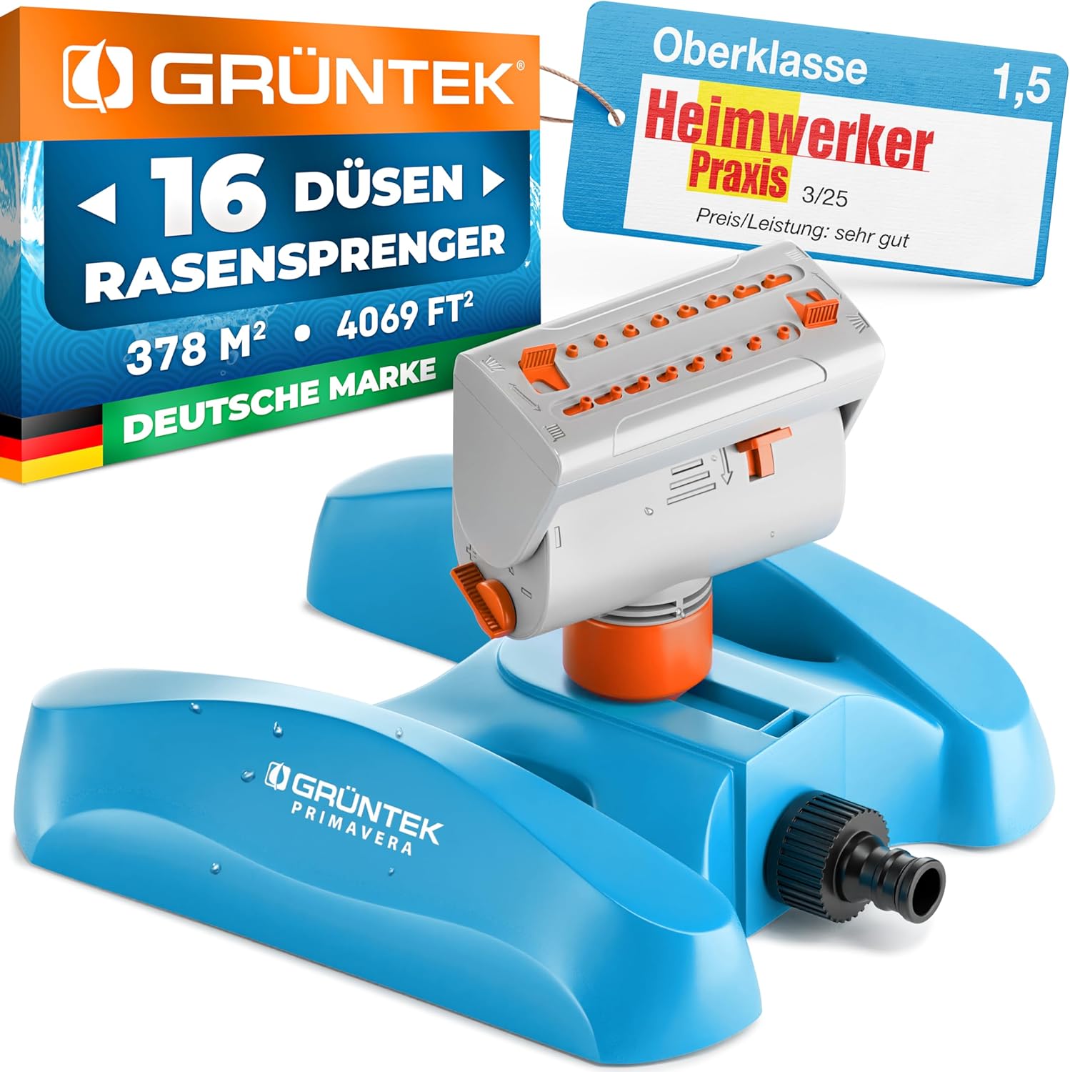 Hey, dieser praktische Mini-Rasensprenger ist echt ein Game-Changer für deinen Garten! Mit seinen 16 Düsen und 4 verschiedenen Sprühmodi kannst du deinen Rasen ganz nach Bedarf bewässern - von 8 bis 18 Meter Reichweite ist alles möglich. Das Beste: Er ist aus 100% recyceltem Kunststoff und damit super umweltfreundlich. Einfach an den Gartenschlauch anklicken und los geht's! Der stabile Stand sorgt auch bei starkem Wasserdruck für keinen Halt. Perfekt für kleine bis mittlere Rasenflächen, wo's mal schnell gehen muss. Die weichen Düsen und der Metallfilter verhindern lästige Verkalkung - super praktisch bei hartem Wasser. Maße: 25x21x18 cm, nur 580 Gramm leicht in Orange. Einfach Plug & Play - mehr Komfort geht kaum!