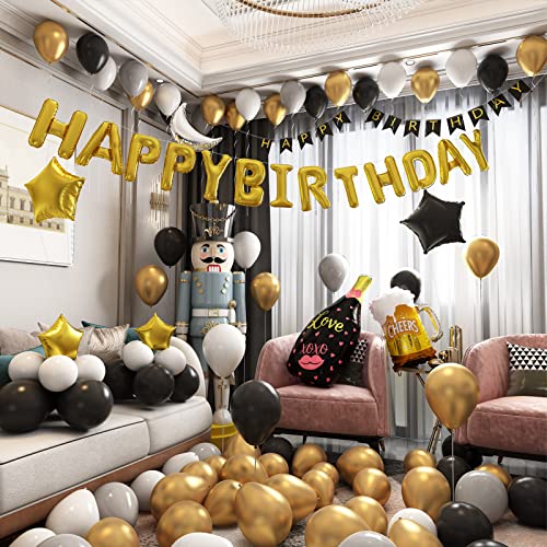 DALEMHOME Geburtstagsdeko Set - 39-teilig Schwarz Weiß Gold Mit Sektflasche