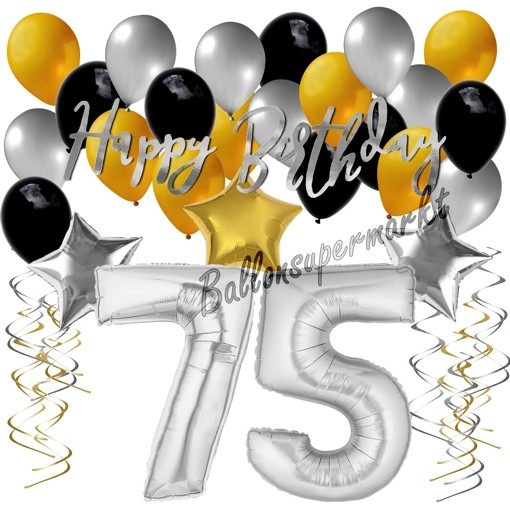 Party time! Dieses 39-teilige Deko-Set von DALEMHOME macht jede Feier zum Event! Enthalten: 1x 'Happy Birthday'-Girlande, 30 Latexballons, 3 Stern-Folienballons, plus Sektflasche und Sektglas als Riesen-Folienballons! Alles in elegantem Schwarz-Weiß-Gold - stylisch und erwachsen. Perfekt für Geburtstage, Silvester oder jede Party bei der angestoßen wird! Mit allem Zubehör wie Bändern und Klebepunkten - einfach aufbauen und wow! Damit wird deine Feier zum unvergesslichen Erlebnis! Einfach luft rein, aufhängen und Party machen!